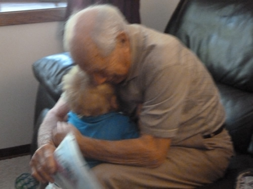 Watch out, Great-grandpa, or I'm going to run you over with my tractor.