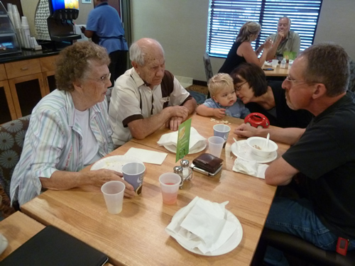 Saturday morning we had breakfast with Great-grandma and Great-grandpa, and Grandpa Kevin and Grandma Gail.