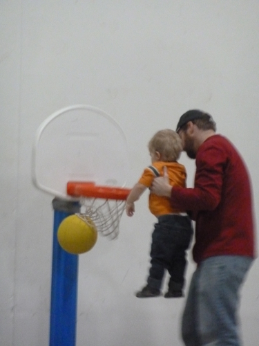 On Monday Daddy was off because his work was closed for Veteran's Day. We went to a fun place that had lots of toys and a gym.