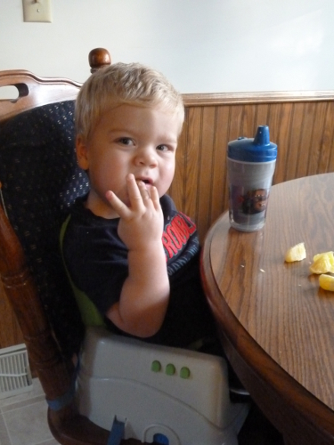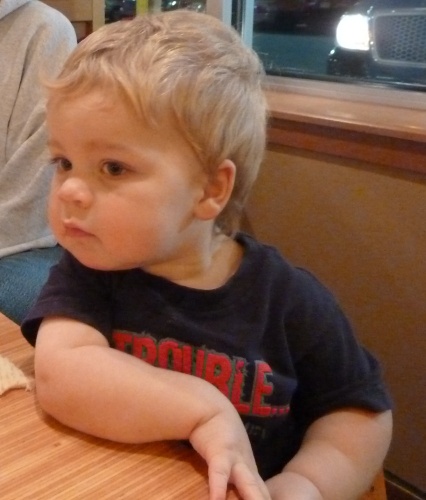 After all that, we went home. I fell asleep in the car. When I got home I had some supper and Mommy let me try some manicotti. It was good. Then I had a bath and played for a bit and read a story and watched some Thomas the Train stories. And then I was over-tired and made a lot of noise before I went to sleep.