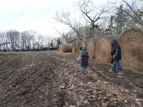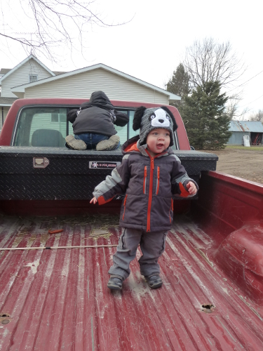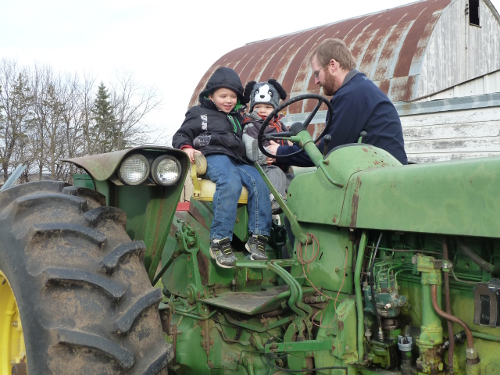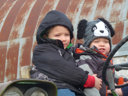 On Saturday morning we went shopping and Grandpa Al bought me a new excavator toy. After lunch, we went to visit Great-grandma Darlene and cousin Max and Uncle Brad on the farm.