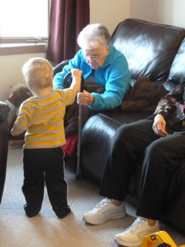 Later in the morning, Great-grandma Dorothy came over with Auntie Diane and Uncle Milton. They watched me play for a while. Daddy tried to get me to take a nap, but I refused. I wanted to show off and run around for my guests.