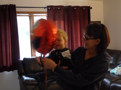 After lunch, Grandma Gail came over! And she brought me a balloon! With Elmo on it! How did she know I've always wanted a balloon?