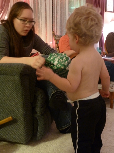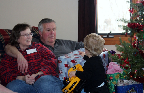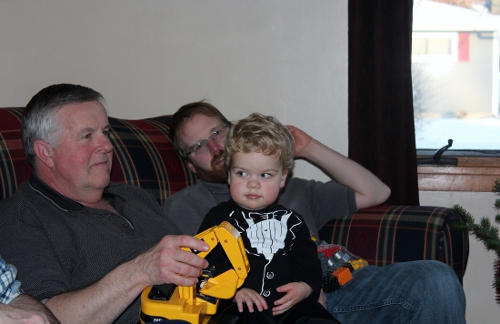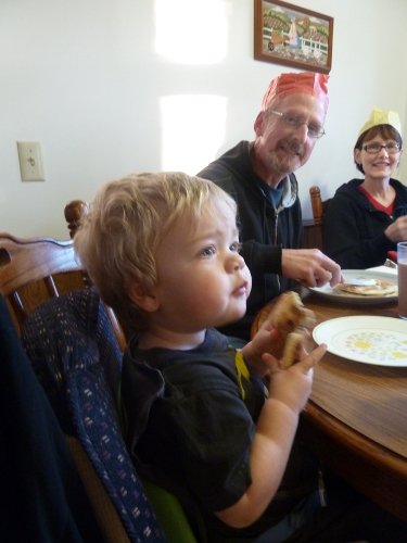 Christmas #3 was at Grandma Wynne and Grandpa Al's on Christmas Day. Mommy made everyone pancakes for breakfast, and Grandma Gail and Grandpa Kevin came over to eat and open presents.