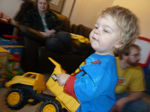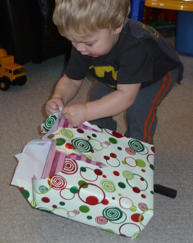 Thank you! Thank you! Thank you! To everyone at all four Christmases for my presents! I promise to play with all my toys and puzzles all the time! And Daddy says I have to put all my money in the bank. So I will. For now.