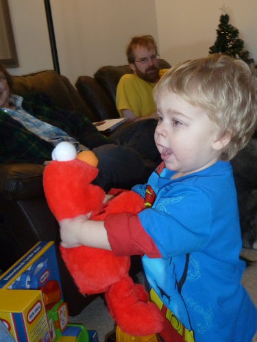 Grandpa Kevin and Grandma Gail with my vintage Tickle Me Elmo (Thanks Great-grandma Muriel!).