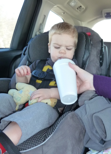 Mommy and Kara kept taking the malt away from me. I guess they didn't want to share. On the way home, we sang Row Row Row Your Boat, which is my new favorite song that isn't in The Lorax.