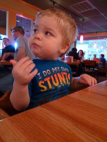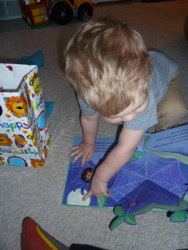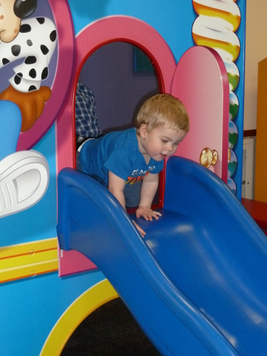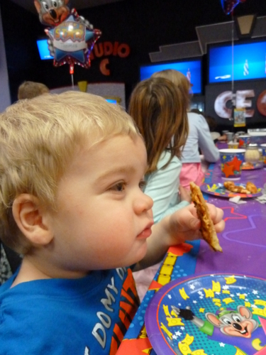 On Saturday, Daddy came to Grandma and Grandpa's house and we went to Tennyson's birthday party! It was at a very noisy, busy place with lots of games and lights and kids running everywhere.