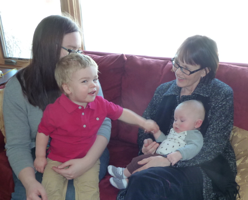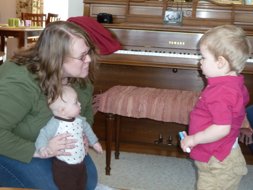 Meeting baby Graham (That's his mommy Liz helping him stand).