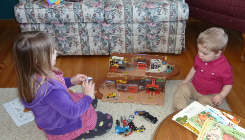 Later in the morning I sent Mommy and Daddy out to get me some toys while I played with Grandpa Al and Grandma Wynne. Mommy and Daddy bought me some Matchbox cars, a little playset for the cars and a LEGO Fire truck.