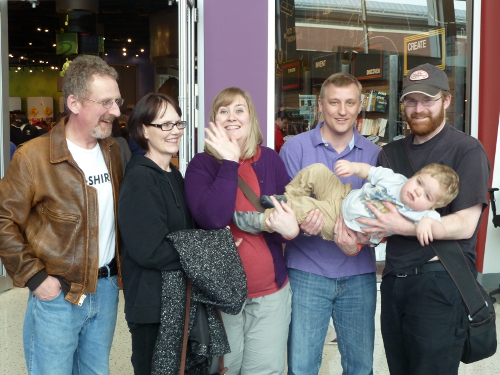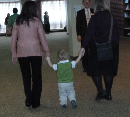 On Sunday, Great-grandma Muriel, Great-grandpa Les and Aunt Nancy came to visit. We all went to Auntie Kara and Uncle Josh's church. I sat with the adults for awhile and listened to the music, but when it was mostly talking it wasn't as much fun, so I went to the kid's room to play.