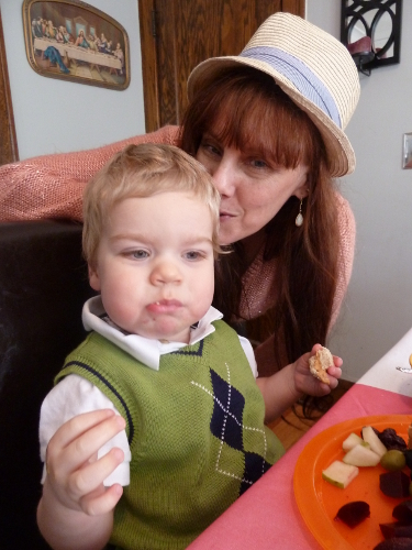This weekend we went up to Auntie Kara's to celebrate her birthday! Grandma Gail and Grandpa Kevin were there, too. We had lots and lots of fun. We went out for breakfast and I had blueberry pancakes.
