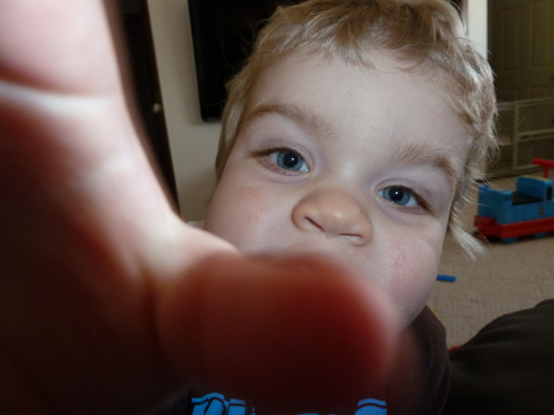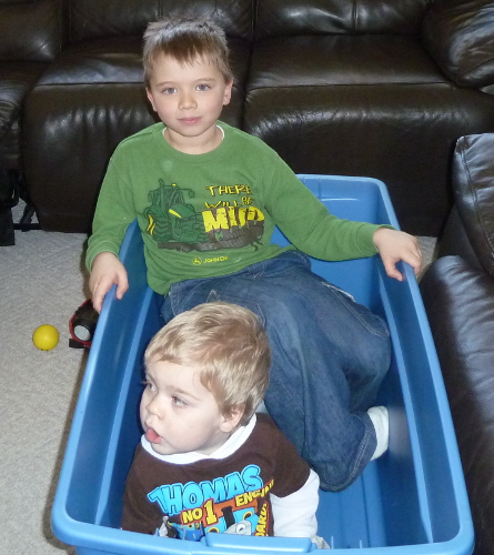 Mommy had to work on Saturday so we went to Grandpa Al and Grandma Wynne's house. And Max was there! We had lots of fun! We played with my toys, read stories with Grandma, went for a ride in my new wagon with Daddy and Grandpa, and hid in the big box where my toys are supposed to be. Great-grandma Dorothy and Uncle David both came over to visit, too.