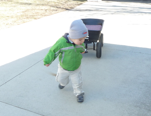 Pulling my new wagon.