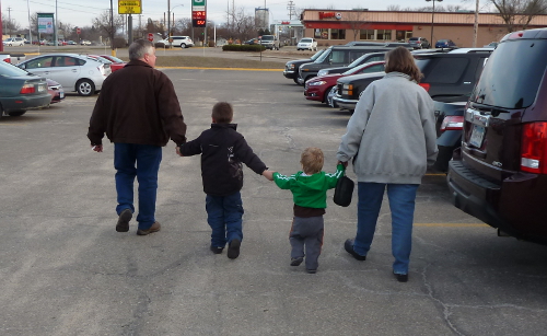 Walking back to the car with Grandpa Al, Max, and Grandma Wynne.