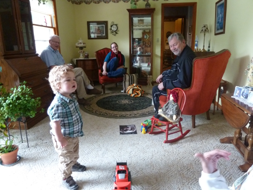 Watching Aunt Cindy, while Great-grandpa, Mommy, and Ross watch me.