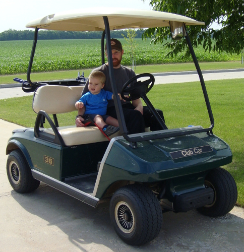 We had a lot of fun on Thursday. We rode in the golf cart and played in the yard.