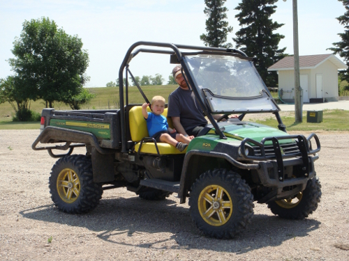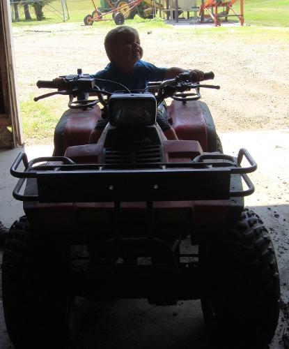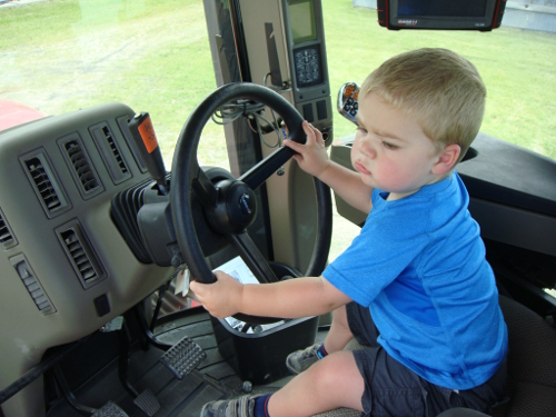 The next morning Bob was out working, so I played in the house for a little while, then we went out to ride in the tractor.