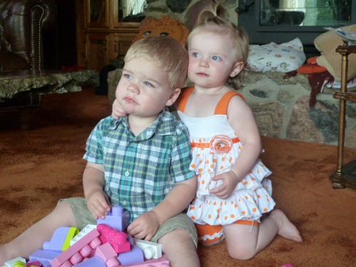 Finally we got to Grandpa Al and Grandma Wynne's house. Duke was really happy to see us - and so were Grandma and Grandpa. I played with Grandpa while Papa unloaded the car and set up my bed.