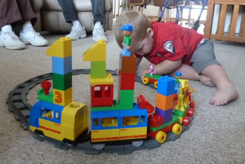 Sunday afternoon we went to see Great-grandma Dorothy. I showed her and Uncle David my LEGO train.