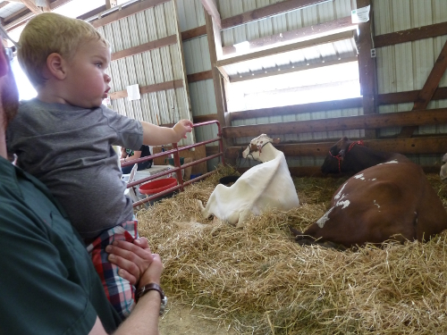 I also saw a lot of tractors, but Papa said I couldn't ride in them because they weren't Bob's. We had fun at the fair, but it was hot, so we went home. I tried to take a nap, but I wasn't able to sleep because I wanted to play with my trains.