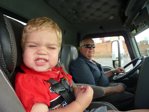 While we were staying with Grandma Wynne and Grandpa Al, I got to ride in Grandpa's truck three mornings in a row!