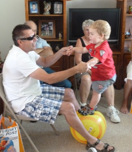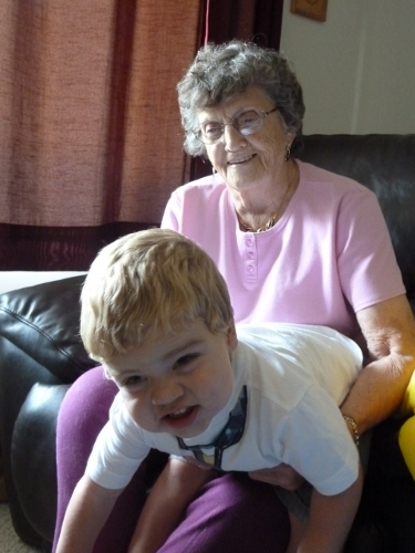 Playing at Great-grandma Dorothy's 91st birthday party.