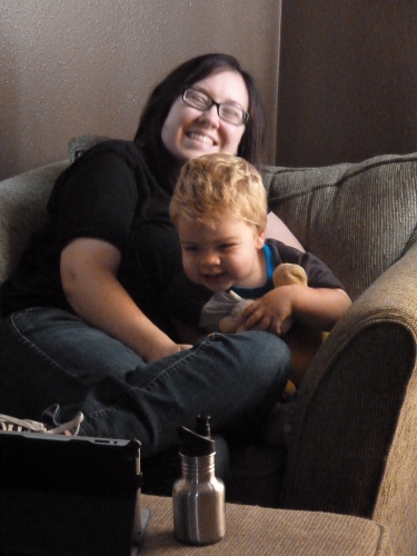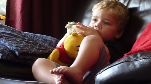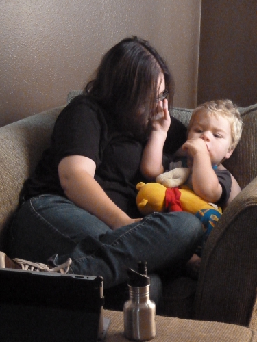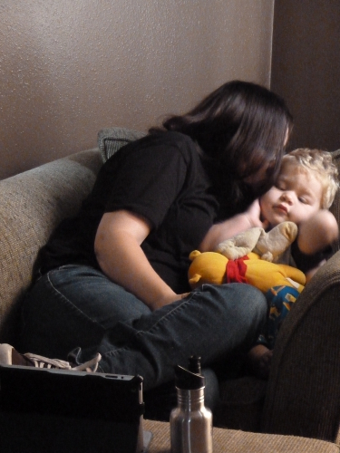 I was a little sick on Sunday, with a runny nose and a cough - so I watched cartoons with Daddy and Grandma Wynne. Mommy went to see baby Freya and help Auntie Kara and Uncle Josh.