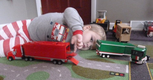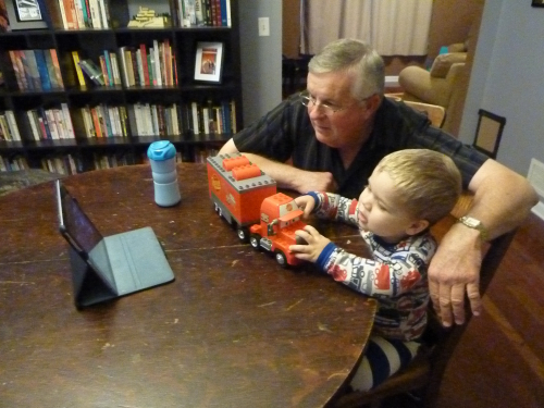 Grandpa Al came to visit me on Tuesday. I was still hurting a lot then. We played with my trucks and watched Winnie the Pooh.