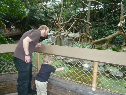 Grandpa Al and Grandma Wynne were supposed to watch me for the weekend, but Grandpa had to work unexpectedly. We went to their house to pick up Duke, since he was staying with them while I was recovering. And since we didn't have anything else to do, we went to the Zoo. We stayed in the inside part since the weather was cold and windy. I explored a few tunnels and watched the monkeys.