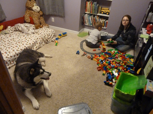Mommy's friend Emily came over on Friday to learn how to make some fancy French dessert, and she played with me and my LEGO train, too.
