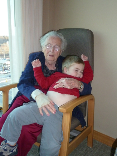 Did you ever notice how I am always struggling to get away whenever my picture is taken with a great-grandparent?