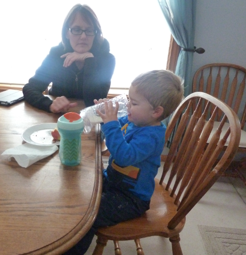 Lunch at Great-grandpa Les and Great-grandma Muriel's house. They let me drink out of the boot.