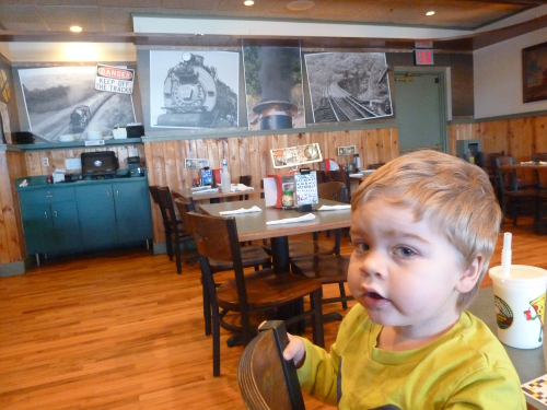 We went out for lunch with Great-grandma Muriel at the train restaurant, and we went to see GG at work.