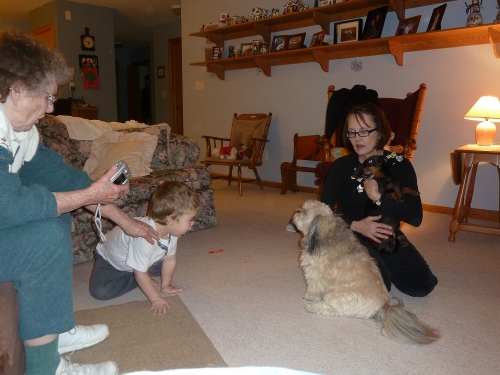 And we went to Great-grandpa Les and Great-grandma Muriel's for the day and GG brought Max and Abby to play!