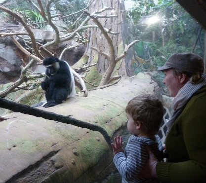 Watching the monkey with Auntie Kara.