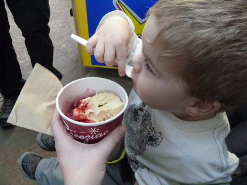 After the Zoo we went to the Mall. I tried some new food, and we looked at some fun toys I didn't get, and I got to open some birthday presents.