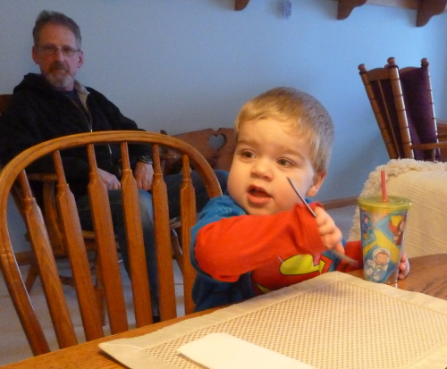 And then later in the morning we went to Great-grandpa Les and Great-grandma Muriel's house to have pancakes (Mommy made them) with GG and Grandpa Kevin.