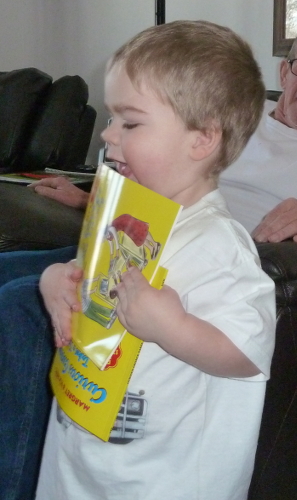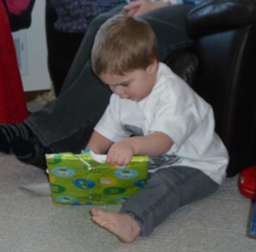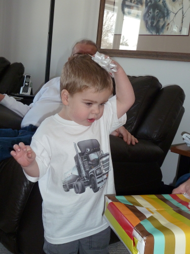 On Sunday, Great-grandma Dorothy, Diane, Milton, Bill, and David came over to visit. And they brought presents that were for my canceled birthday party from a few weeks ago.