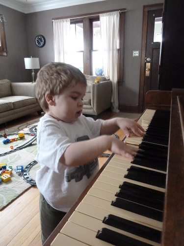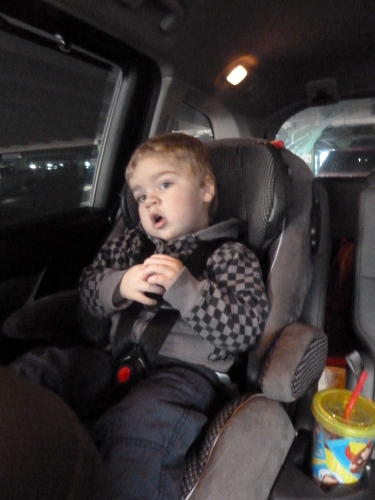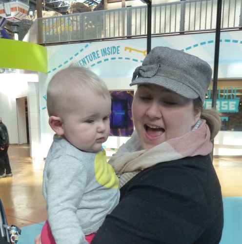 Playing with my new LEGO toy while Mommy and Auntie Kara shop for shoes.