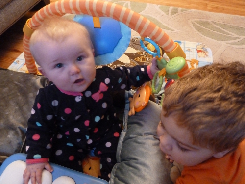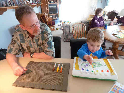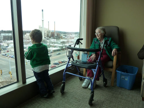 This past week Mommy and I were on spring break, so we left Daddy and Duke at home and went visiting. We stayed with Kara and Josh and Freya, with Grandpa Al and Grandma Wynne, and with Great-grandpa Les and Great-grandma Muriel. We saw lots of other people, including Grandma Gail and Grandpa Kevin, Great-grandma Dorothy, Uncle David, Aunt Diane, and Uncle Neil. We had a lot of fun. But we missed Daddy.