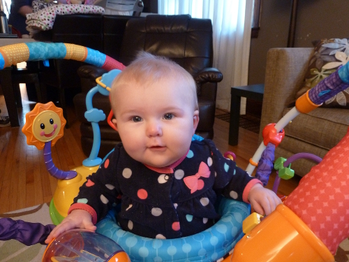 Little Miss Freya in her bouncy toy. Ah, those were the days....