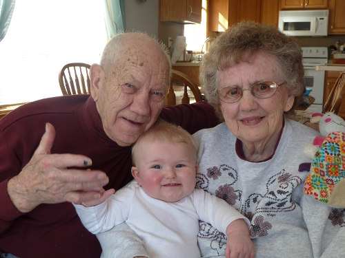 Freya with Great-grandpa Les and Great-grandma Muriel.