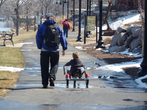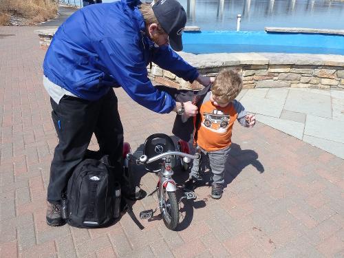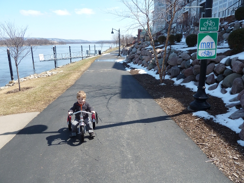 Mommy and Daddy surprised me by bringing my bike along - I got to ride it along the river and under the big bridge.