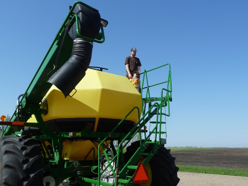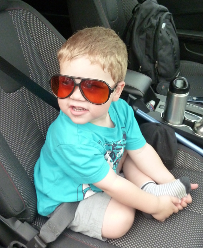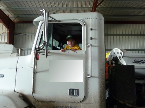 Relaxing in the car while Grandpa pumped the milk onto his truck.