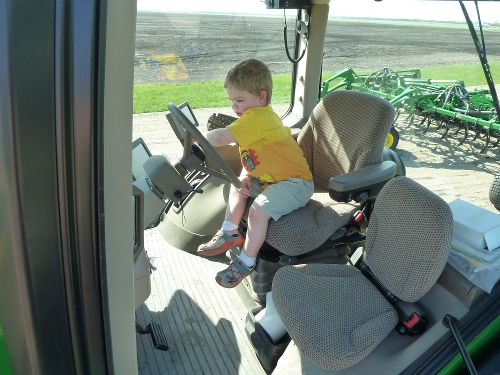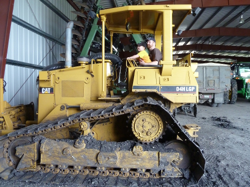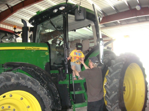 Then I finally got what I have been asking for every morning for months: we went to Bob's house to ride the tractors and the Gator and the loader and the trucks!