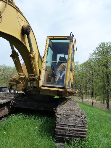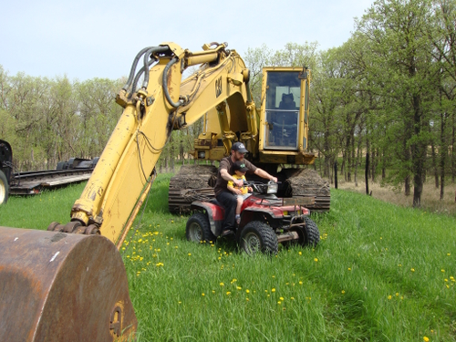 On the smaller bulldozer (the big one was too hard for me to climb up).