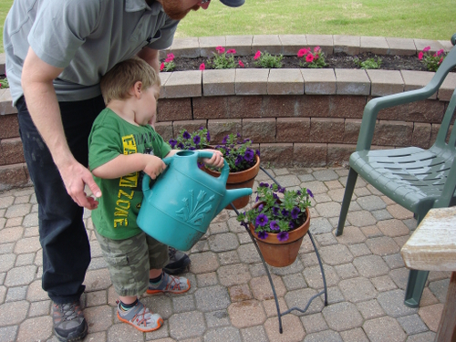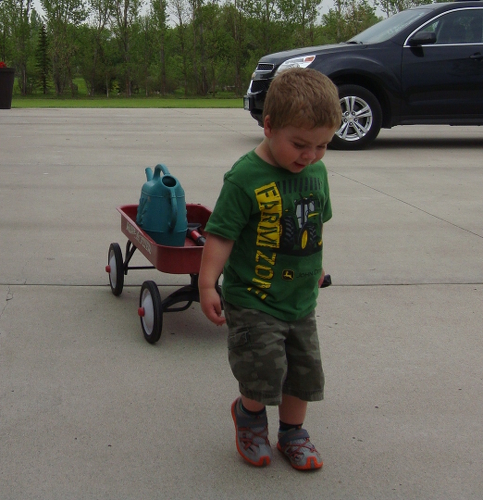 Grandpa Al brought us home in the afternoon and I found out Mommy planted a garden while we were gone! Now I can help Mommy garden, too! Duke was happy to see us, and Grandpa stayed to play with me for a while. Daddy gave me a bath and Mommy made pizza for supper. I had a great week! And I'm already excited to ride Bob''s tractor again.
