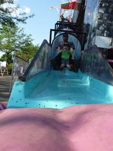 On Wednesday we went to a fair for a little fun. I had a giant pickle, played a game and won a prize, rode a four-wheeler, navigated an obstacle course, piloted a helicopter, and rode a dragon train. I was having so much fun I didn't want to go home.
