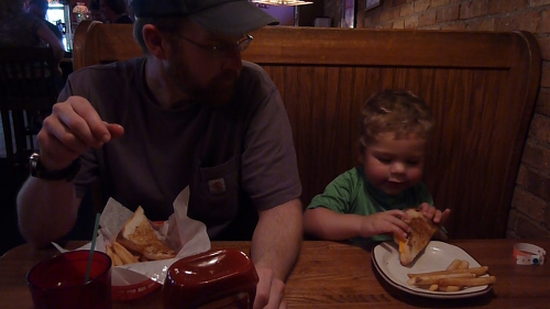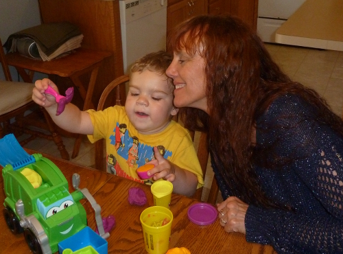 For the weekend, we left Daddy home with Duke and went to Great-grandpa Les and Great-grandma Muriel's house. We played with GG there, and Auntie Nancy came to visit. Mommy and I had a lot of fun.